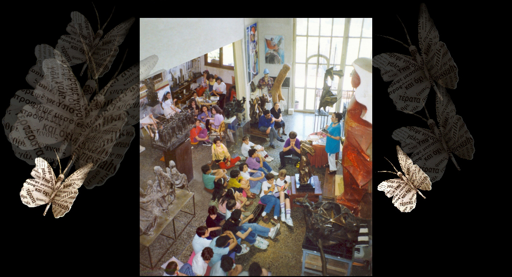 Golanda, the sculptor, Dokatzis, the engraver, T. Nikolaidou, behind her, sculptor,